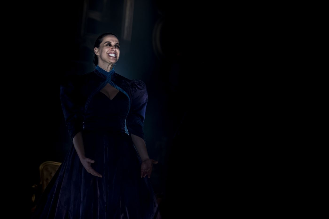 O cenário, assinado pelo estilista e artista visual Ronaldo Fraga, transforma o palco em uma instalação artística repleta de molduras, dialogando com videoarte do cineasta Cao Guimarães. A experiência faz o público sentir-se parte da festa em que a protagonista, ao ser “leiloada”, se rebela e joga o dinheiro na lareira — gesto que simboliza sua recusa em ser comprada.
