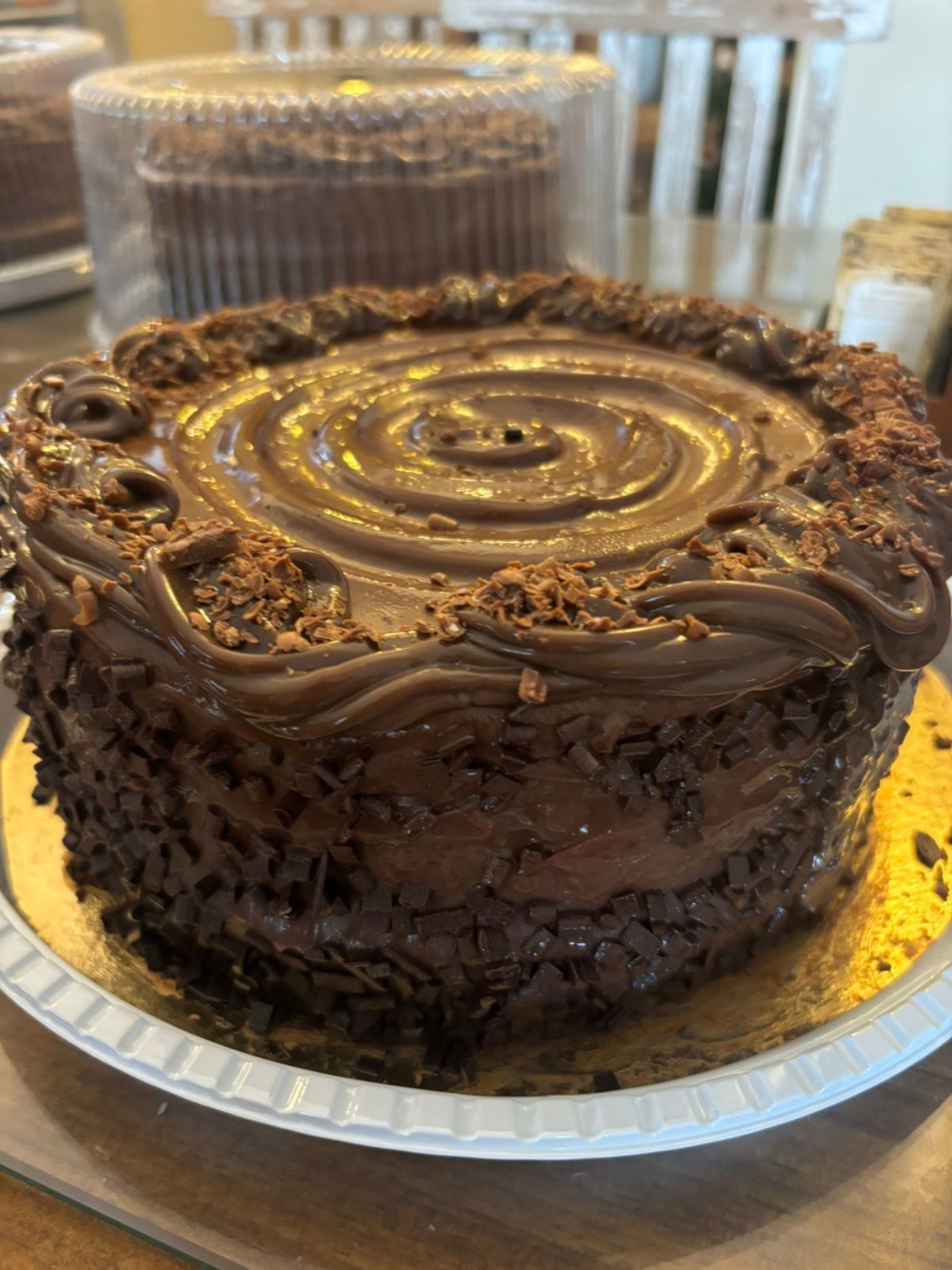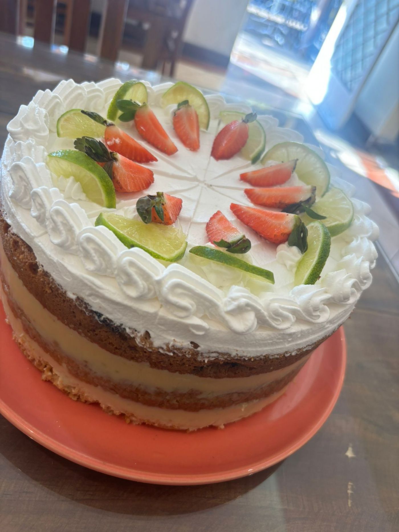 Para quem prefere opções salgadas, a confeitaria oferece quiches de alho-poró, camarão, queijo, queijo com bacon e frango, também disponíveis em três tamanhos. Há ainda tortas salgadas nas versões pequena, média e grande, com valores que variam entre R$90,00 e R$250,00. Completando o menu, os bolos caseiros trazem opções como bolo de aipim, broa cremosa, bolo de cenoura e bolo de cenoura com chocolate, com preços entre R$80,00 e R$110,00.