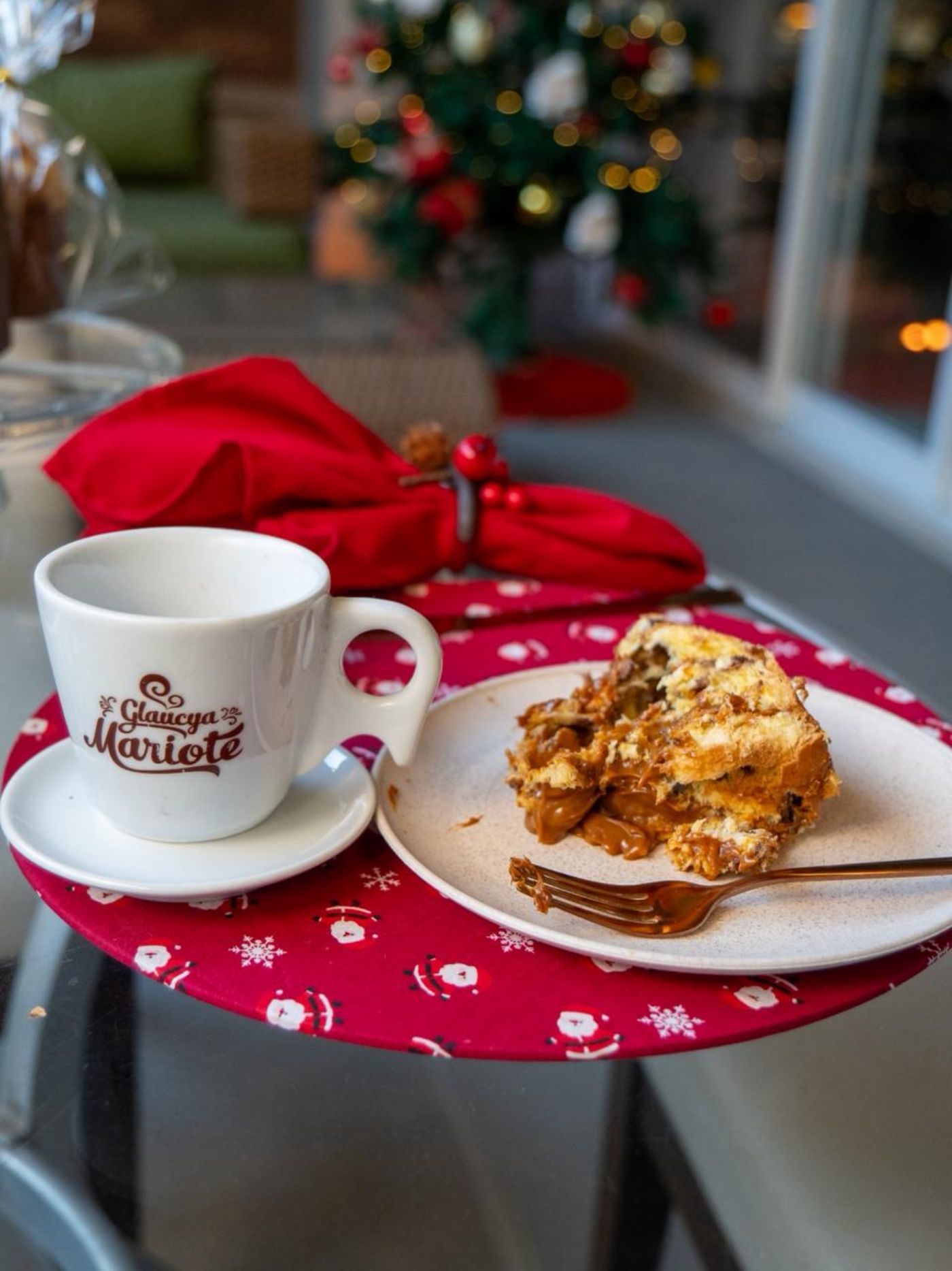 O Cardápio de Natal da Confeitaria Glaucya Mariote reúne uma seleção de sobremesas artesanais, tortas salgadas e panetones especiais, preparados com ingredientes de alta qualidade e foco total em sabor. Entre os destaques da temporada estão os cheesecakes, começando pela Cheesecake Basca, disponível nos tamanhos P por R$ 180,00 e M por R$ 250,00, acompanhada de um doce de leite cremoso. Outro sucesso é a Cheesecake de Frutas Vermelhas, também nos tamanhos P e M pelos mesmos valores. Para os amantes de sabores mais sofisticados, a casa oferece ainda a Torta de Pistache com Coulis de Frutas Vermelhas, disponível no tamanho M por R$ 250,00.