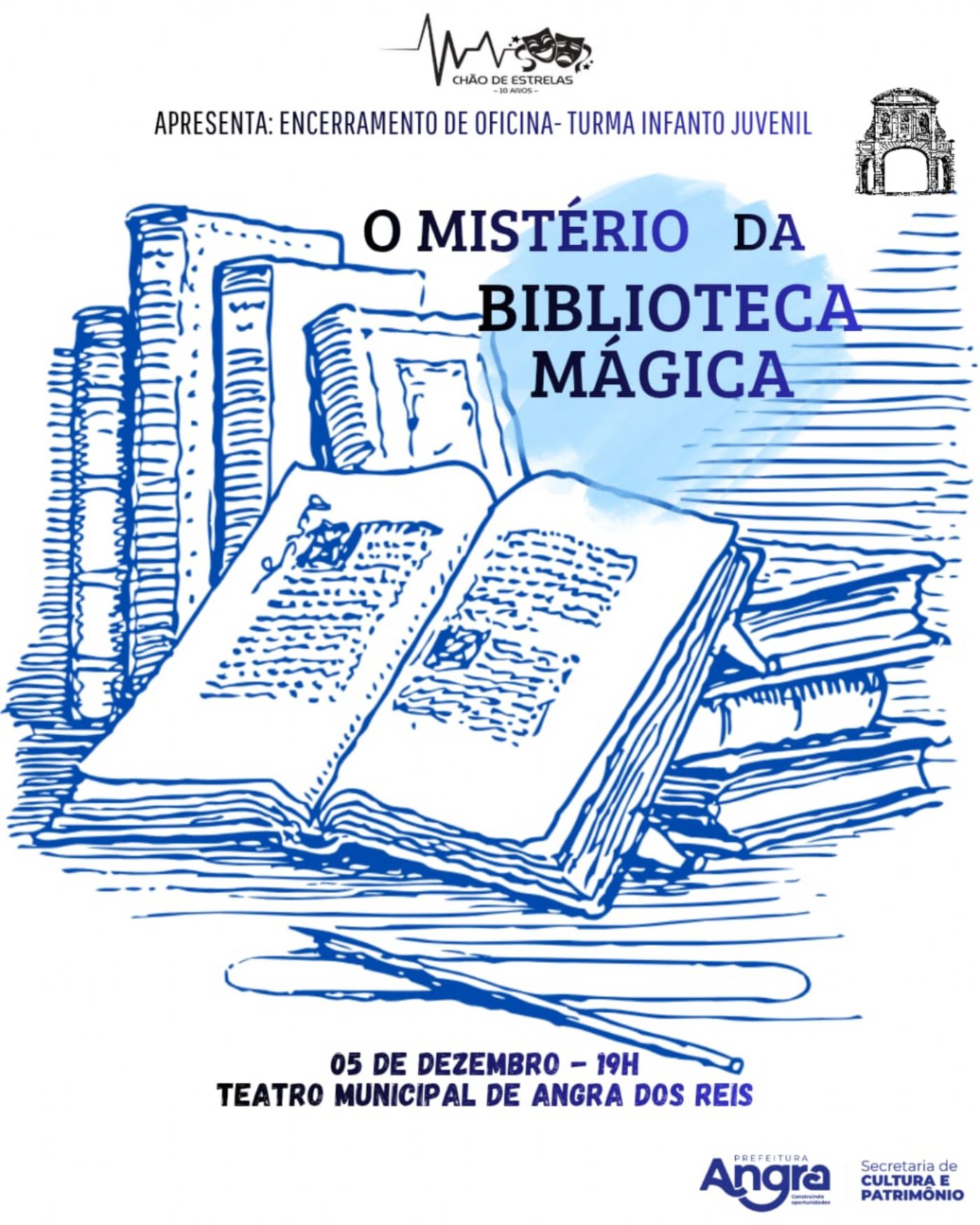Unindo teatro, formação, reconhecimento e celebração, o ChãoDeEstrelas encerra o ano reafirmando seu papel essencial no cenário cultural angrense e convidando o público a embarcar na aventura encantada de “O Mistério da Biblioteca Mágica”. Uma noite que promete emoção, fantasia e o brilho de uma década dedicada à arte.