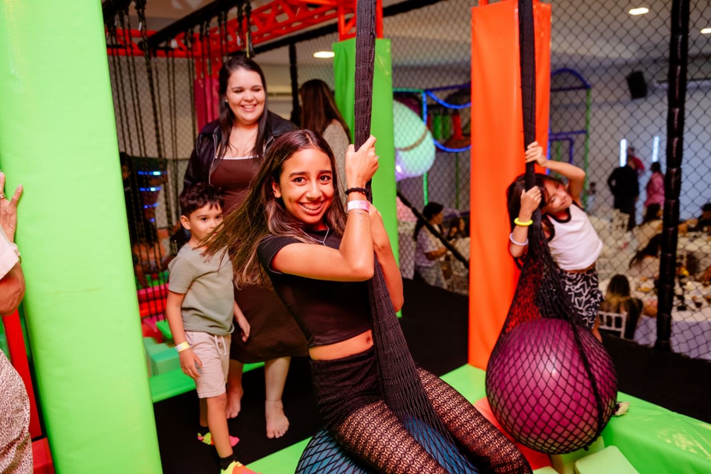 O grande diferencial é ser a primeira casa de festas da região a contar com parque trampolim como atração principal. Além disso, o espaço oferece duas áreas de realidade virtual — onde crianças se aventuram e adultos “entram no espaço sideral” —, brinquedão, mini campinho, área baby, cartola maluca, sinuca e recreação terceirizada completa já inclusa no pacote.